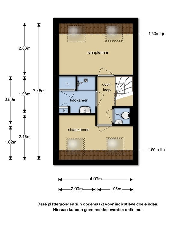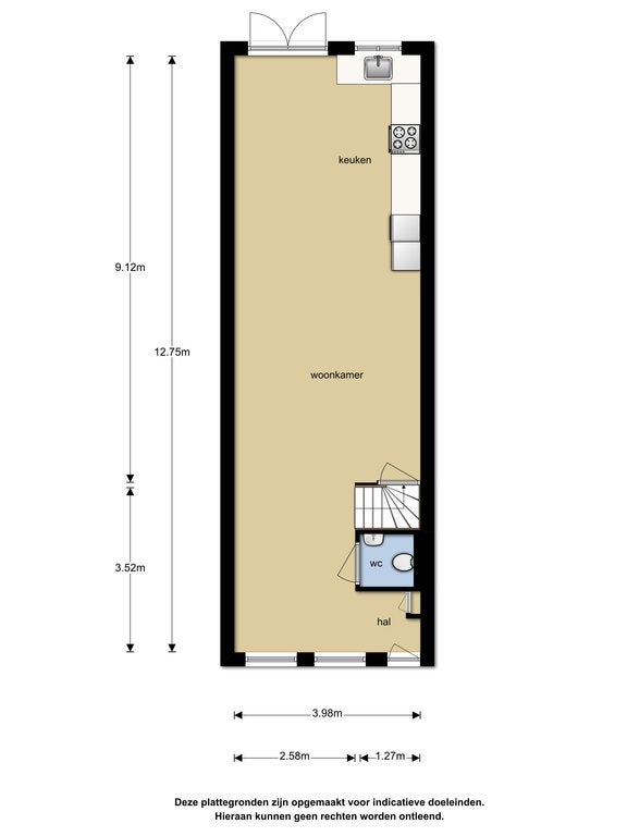 Deze informatie is met de grootst mogelijke zorgvuldigheid samengesteld. Desondanks wordt geen aansprakelijkheid aanvaard voor eventuele onvolledigheden of onjuistheden, noch voor de gevolgen daarvan. Alle opgegeven maten en oppervlakten zijn indicatief. Koper/huurder heeft een eigen onderzoeksplicht naar alle zaken die voor hem of haar van belang zijn. Met betrekking tot deze woning treedt de makelaar op als adviseur van de verhuurder.