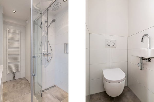 Eerste en tweede verdieping: in totaal vier slaapkamers en twee moderne badkamers. Op beide verdiepingen bevindt zich een apart toilet, wat het comfort voor een gezin aanzienlijk vergroot.