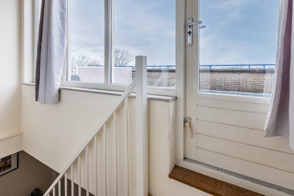 Buitenruimte: de woning beschikt over een voor- en achtertuin alsmede een dakterras. De voortuin is bestraat en biedt daarmee ruimte om op eigen terrein te parkeren. Vanuit de voortuin heb je ook toegang tot de (fietsen)berging. Het dakterras en de achtertuin geven allebei een weids en vrij uitzicht waar je eindeloos van kunt genieten.