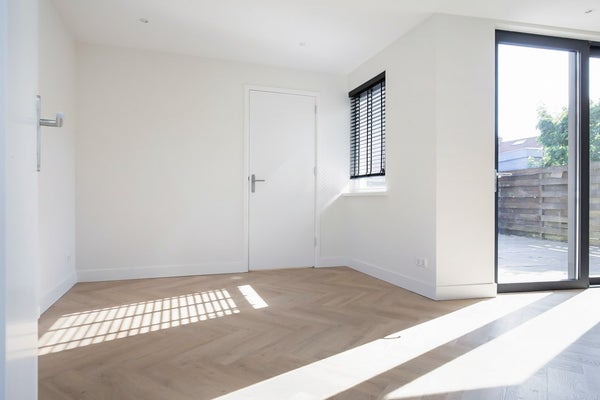 De woning is drie jaar geleden volledig gerenoveerd en afgewerkt met moderne details, waaronder een stijlvolle visgraatvloer en strak gestucte wanden. Met een woonoppervlakte van 74 m² is de ruimte efficiënt ingedeeld, waardoor er drie volwaardige slaapkamers zijn gecreëerd. Twee slaapkamers hebben directe toegang tot de patio-tuin, die ook vanuit de woonkamer bereikbaar is – perfect voor een gevoel van licht en vrijheid.