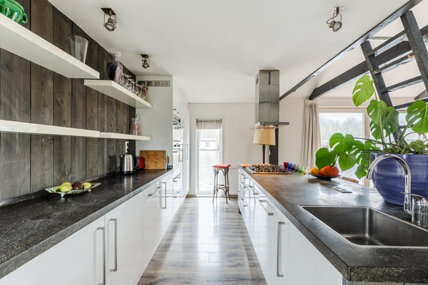 Via de eigen parkeerplaats bereik je de sfeervolle tuin met verschillende fruitbomen, twee multifunctionele tuinhuizen of schuren en een sauna. Er zijn twee veranda’s waar je zomers tot laat in de avond kunt vertoeven. De woonark beschikt over een ruime hal en gang, een toilet met fontein en een grote, lichte living met deels open kap. Vanuit de woonkamer is er via de schuifpui toegang tot de tuin en het water. De ruime woonkeuken is voorzien van een kookeiland en diverse inbouwapparatuur. Daarnaast is er een extra slaapvide en bergruimte aanwezig.