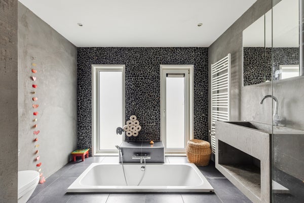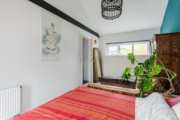 De hoofdslaapkamer is ruim en heeft een open kap, met toegang tot het terras aan de waterzijde. Ook de badkamer en tweede slaapkamer bieden toegang tot het terras. De badkamer is voorzien van vloerverwarming, een verdiept tweepersoons ligbad, inloopdouche, wastafel, tweede toilet en een vaste kast voorzien van een wasmachine.