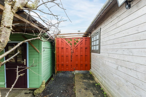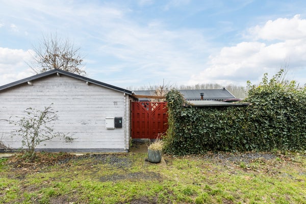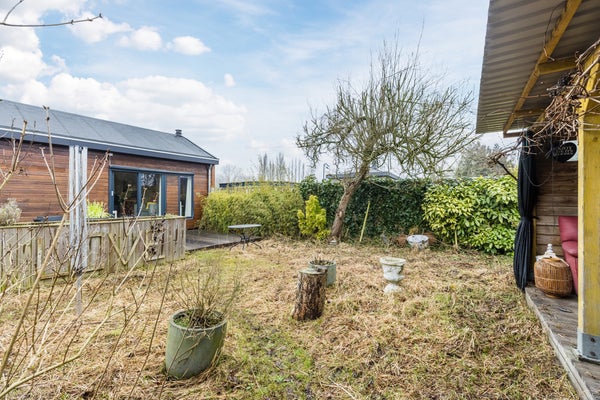 Het perceel aan de straatzijde is ingericht als tuin en deels als parkeerterrein. Op het terrein bevinden zich een grote hobby schuur met openslaande deuren, voorzien van elektra en water, een aparte sauna en een tweede berging of werkruimte.