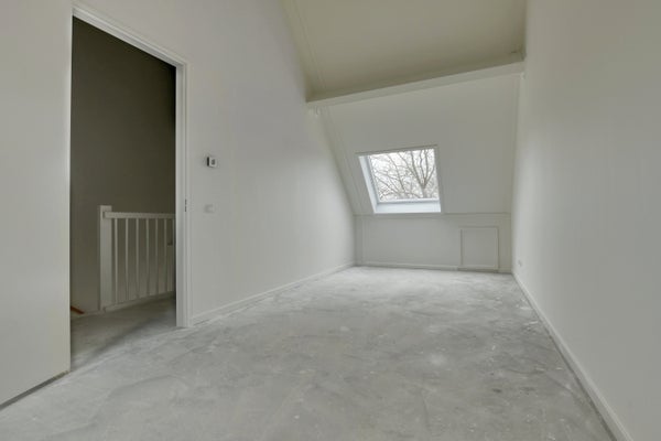 Op de eerste verdieping zijn de drie fijne slaapkamers (9m², 11m² en 13m²). De moderne badkamer biedt alles wat je nodig hebt: een inloopdouche, een tweede toilet, een dubbele wastafel met meubel en een praktische handdoekradiator. En dan de zolder, hier vind je de verrassend ruime vierde slaapkamer. Hier bevindt zich ook een handige berging met aansluitingen voor een wasmachine en droger.
