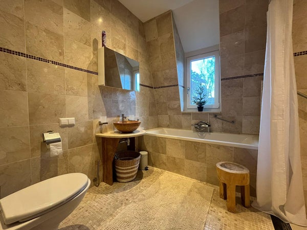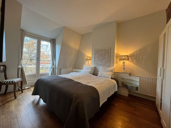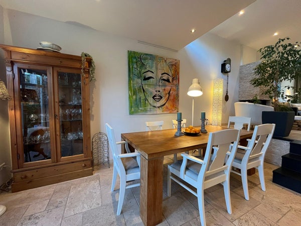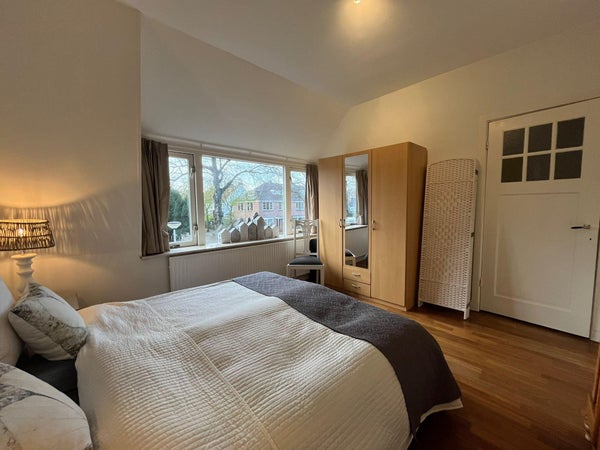 Per direct beschikbaar volledig gemeubileerde woning (143m2) aan de Laan van Rozenburg in Heemstede met 2 slaapkamers en ruime tuin met veel licht inval inclusief tuinhuis, gelegen in een rustige wijk op fietsafstand (10 min) van het strand voor €2.900,- exclusief G/W/E en internet per maand aangeboden.