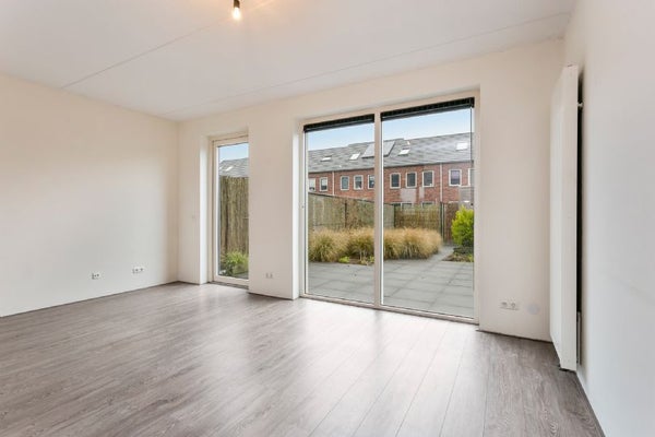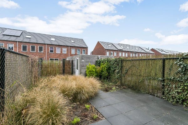 Ruime hal met meterkast, een moderne toiletruimte, trapkast en de trapopgang naar de 1e verdieping. De ruime woonkamer biedt toegang tot het terras en de zonnige achtertuin. Hier is het heerlijk vertoeven in de zonnige dagen van het jaar. De tuin is met een draad hekwerk omsloten en voorzien van een tuinpoort, hetgeen veel privacy biedt.