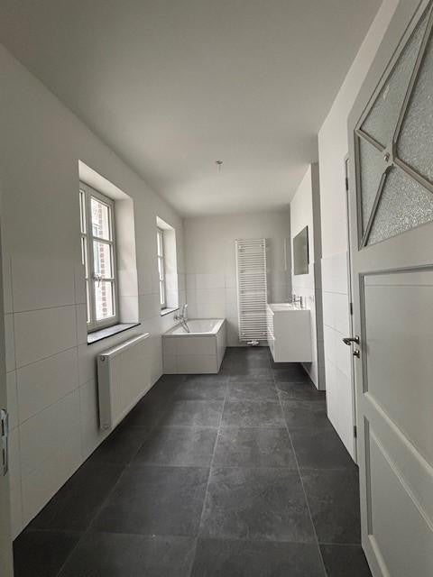 1e verdieping: overloop, 3 slaapkamers waarvan één met terras, badkamer met ligbad, inloopdouche, modern badmeubel met dubbele wastafel en 2e toilet.