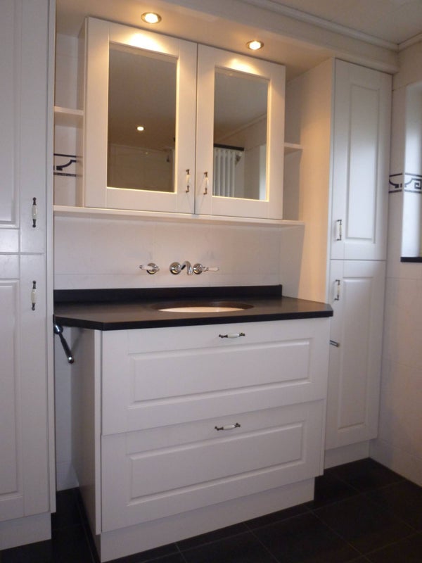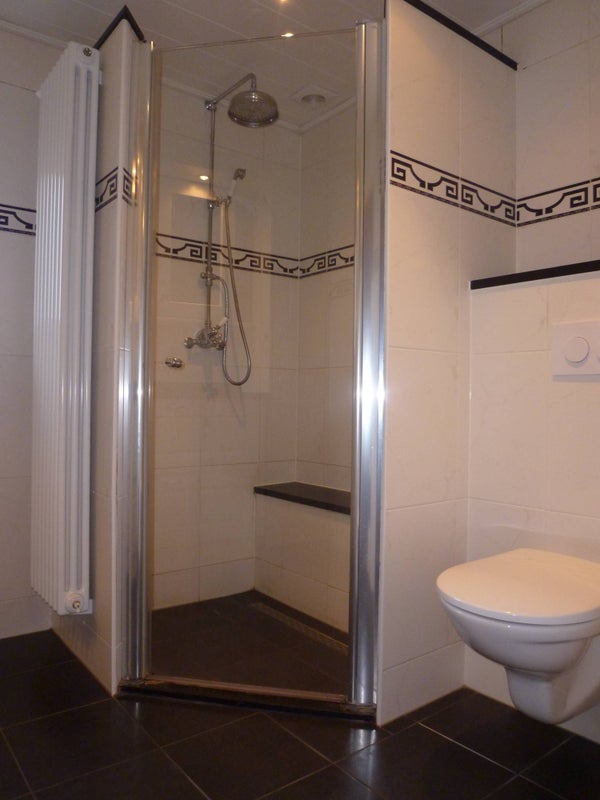1e verdieping: overloop, 3 slaapkamers (resp. ca. 8, 16 en 16m2), nette badkamer met douche, toilet (hang) en badkamermeubel.