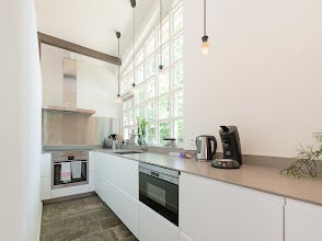 De sfeervolle woonkamer is uitgerust met een moderne houtkachel. Via openslaande deuren heeft u toegang tot het zonnige terras. De luxe open keuken beschikt over hoogwaardige inbouwapparatuur, een inductiekookplaat, inbouw oven en magnetron. De gezellige zithoek waar je uitgebreid kunt dineren.