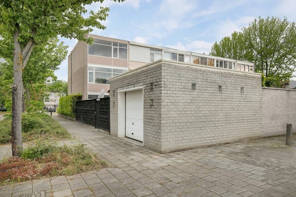 Onderhoudsvriendelijke tuin op het zuiden. Vrijstaande garage van ruim 21 m² aan de