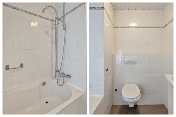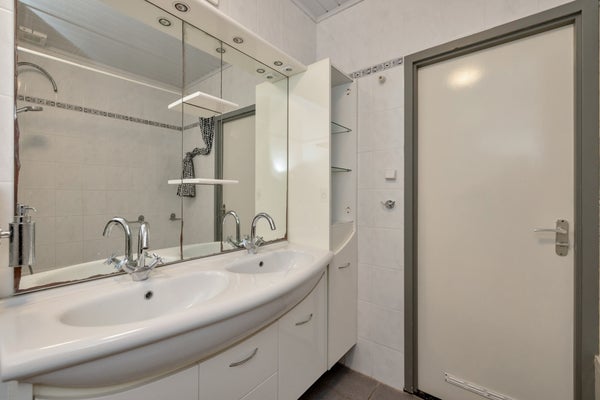 Drie slaapkamers en een badkamer met bad/douche, dubbele wastafel en tweede toilet. In