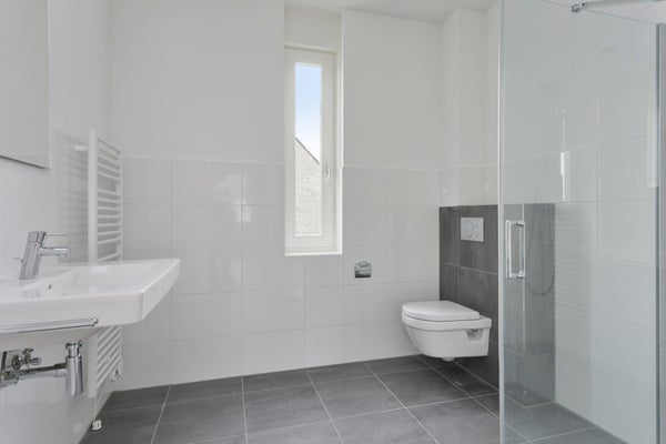 Via de overloop kun je de 3 ruime slaapkamers en de badkamer bereiken. De moderne badkamer is uitgevoerd met een douche, wastafel en toilet.