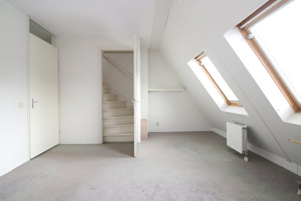 Twee slaapkamers, badkamer en vaste trap naar zolder (via grote slaapkamer).