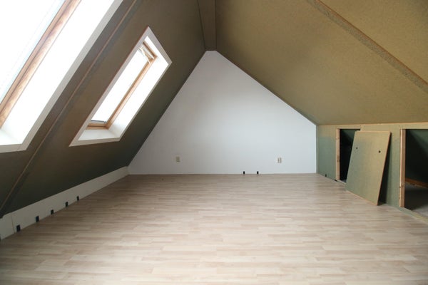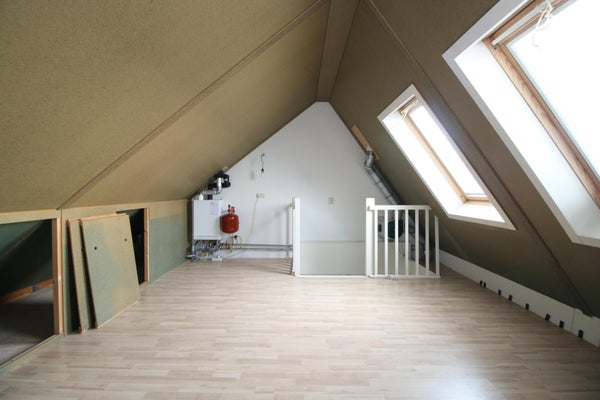 De zolderverdieping is alleen toegankelijk via de slaapkamer en is voorzien van twee dakramen.