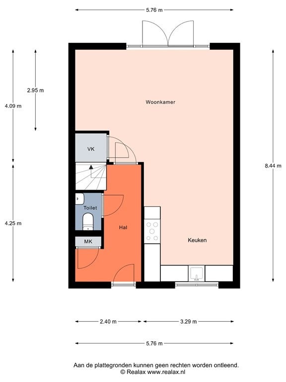 Begane grond: Via de entree/hal met meterkast, toilet en trapopgang naar de eerste verdieping bereik je de royale woonkamer en de halfopen keuken.