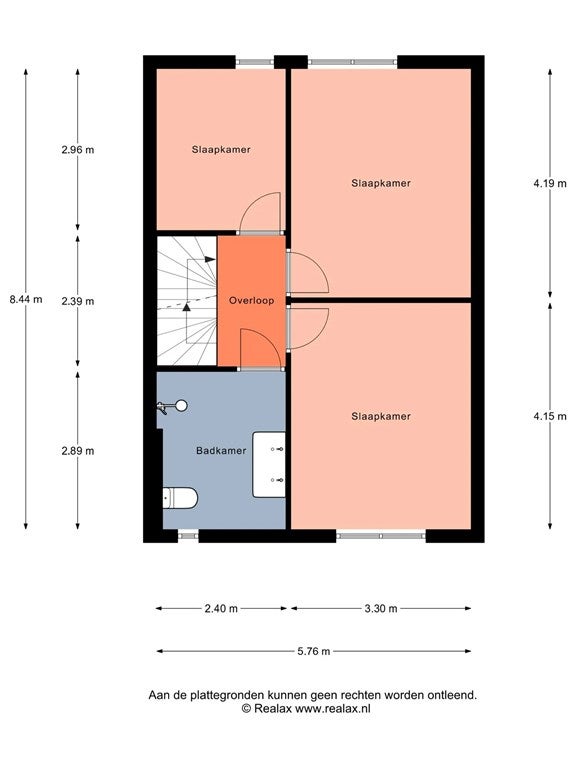 Eerste verdieping: Overloop met toegang tot drie royale slaapkamers en een badkamer.