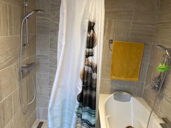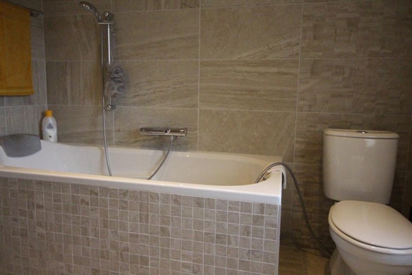 Op de eerste verdieping bevinden zich twee slaapkamers, een kantoorruimte, en een badkamer met ligbad, inloopdouche, wastafel en toilet.