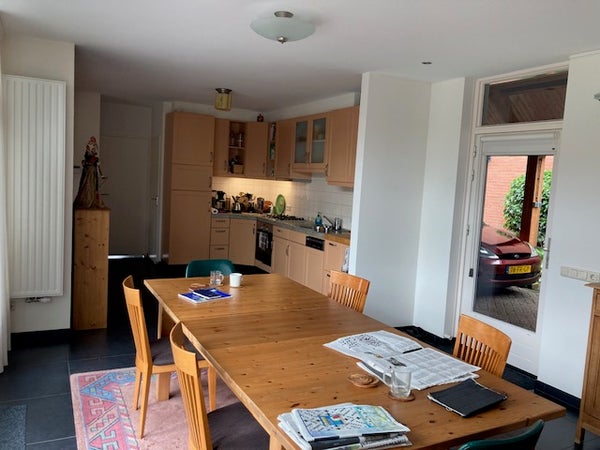 De woning beschikt over een ruime woon- en eetkamer met een moderne open keuken, voorzien van alle benodigde inbouwapparatuur.