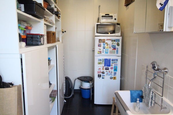 Daarnaast is er een bijkeuken met extra bergruimte.
