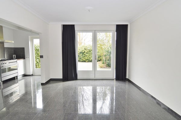 Entree, hal, meterkast, zwevend toilet met fontein, ruime en lichte woonkamer met een nette open keuken. De keuken is zeer compleet met een koel/vries combinatie, 6-pits gasfornuis, grote oven, magnetron en vaatwasser. Via de openslaande deuren aan de achterzijde van de woning is toegang tot de achtertuin met achterom.