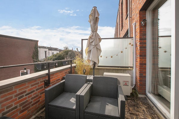 Op de eerste etage is de ruime woonkamer met open keuken te vinden. De bank in de woonkamer kan aanwezig blijven. In de woonkamer is de moderne open keuken te vinden. Deze is voorzien van inbouwapparatuur zoals een inductiekookplaat, koelast, vriezer, vaatwasser en combi-oven. Daarnaast is er meer dan voldoende kastruimte aanwezig. Aan de achterzijde van de woonkamer is het dakterras aanwezig.