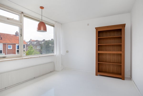 Hier bevinden zich een overloop met toegang tot drie slaapkamers en de recent gerenoveerde badkamer. Alle drie de slaapkamers zijn voorzien van een nette witte vloer, wat een frisse uitstraling geeft. Er zijn twee slaapkamers aan de achterzijde van de woning. De eerste van deze twee is relatief klein, maar heeft voldoende ruimte voor een eenpersoonsbed en kledingkasten. De tweede slaapkamer is de grootste slaapkamer en is voorzien van inbouwkasten én airco. Tevens geeft deze toegang tot het balkon, waar het vooral 's avonds heerlijk zonnig kan zijn. Aan de voorzijde bevindt zich de derde slaapkamer. Hier zijn twee kasten aanwezig, welke optioneel zijn. Deze voorste slaapkamer is voorzien van rolluiken zodat het 's zomers niet te heet wordt. De badkamer is zeer recent gerenoveerd. Deze is voorzien van een matzwarte regendouche, wastafel en een toilet.