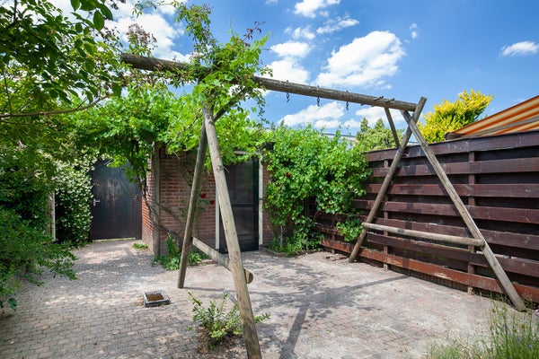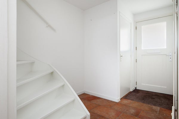 Via de groene, maar veelal betegelde voortuin bereik je de voordeur.