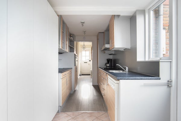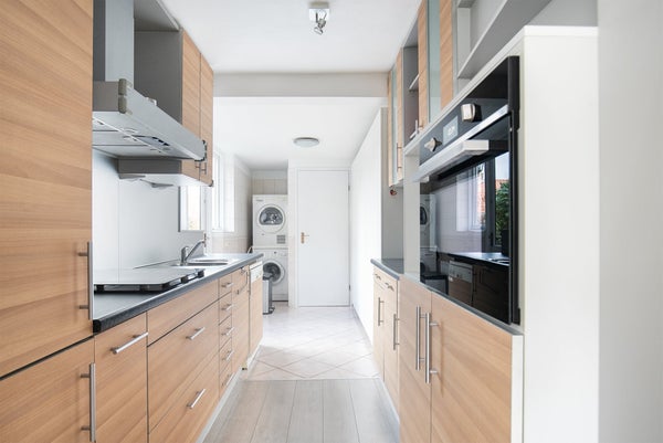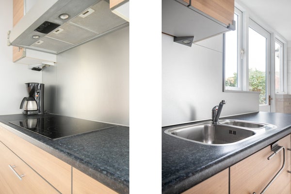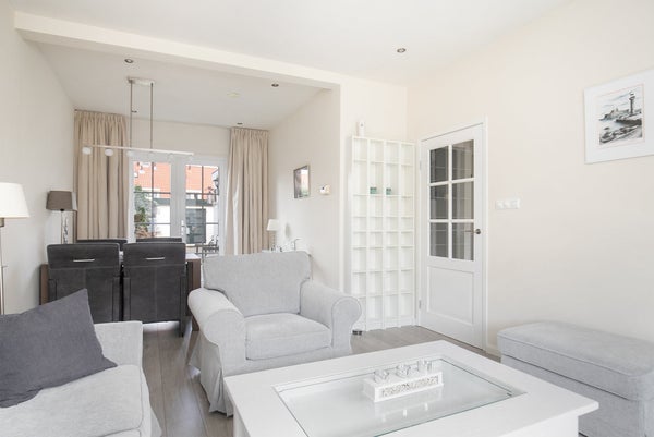 De woonkamer is aan de voorzijde gesitueerd, heeft veel licht door het grote raam, en mooie openslaande deuren naar de achtertuin. Daarnaast is er een eettafel met vier nieuwe stoelen, een prettige zithoek, flatscreen tv en inbouwspots in het plafond. De keuken is voorzien van een inductie kookplaat, een koel/vries combinatie, een inbouw afzuigkap, inbouw oven/magnetron, koffiezetapparaat, waterkoker, Miele vaatwasser en servies. Daarnaast is aan de achterzijde van de woning een grote kastenwand, toilet, wasmachine en droger.