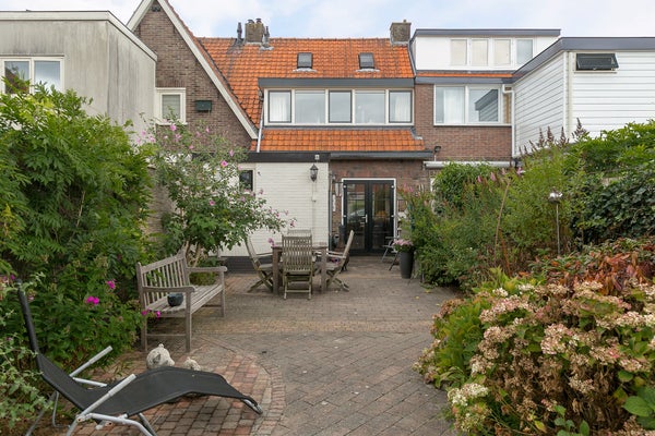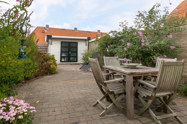 Via de woonkamer en keuken is toegang tot de goed onderhouden tuin aan achterzijde van de woning. Behorend tot de tuin is een eethoek, houten bankje, loungestoel, buitenverlichting met sensoren, houten berging met twee openslaande deuren en een achterom ingang.