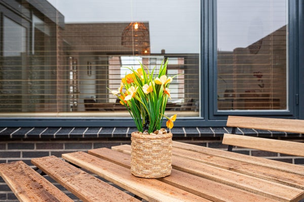 De woning beschikt over een verzorgde achtertuin met terras, waar u heerlijk van de zon kunt genieten.