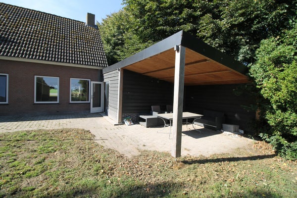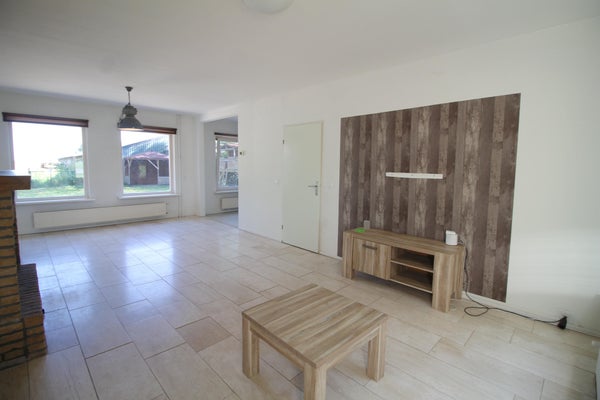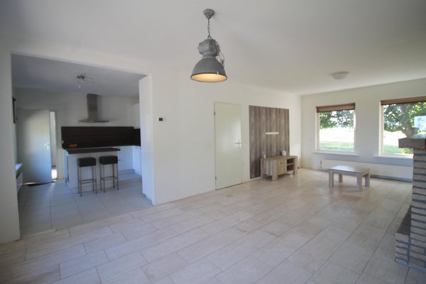 Buiten de bebouwde kom van Hoeven ligt deze mooie woning, op het terrein van een boerderij. Het terrein wordt gedeeld met een ander gezin.