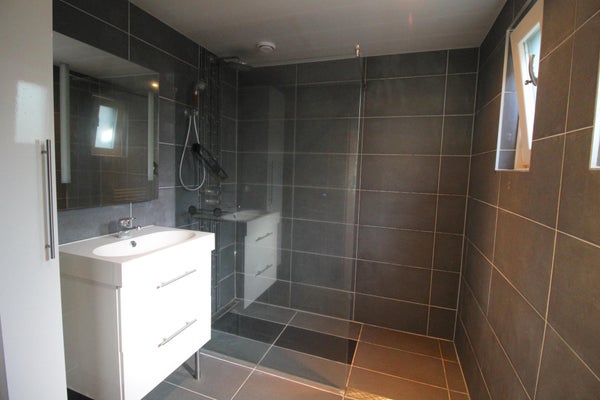 Op de eerste etage bevinden zich 3 slaapkamers en een tweede badkamer. Deze badkamer heeft een bad met daarin douchemogelijkheid, een wastafelmeubel en een toilet. De 3 slaapkamers zijn gedeeltelijk gemeubileerd. De meubilering is zoals te zien op de foto's. De woning heeft een heerlijke tuin.