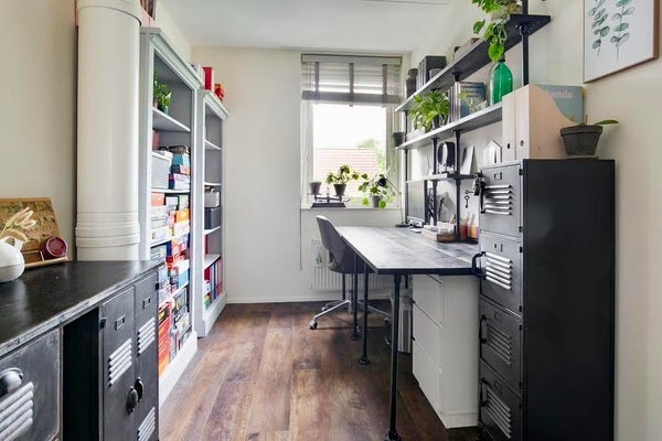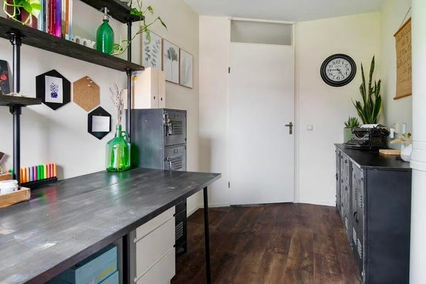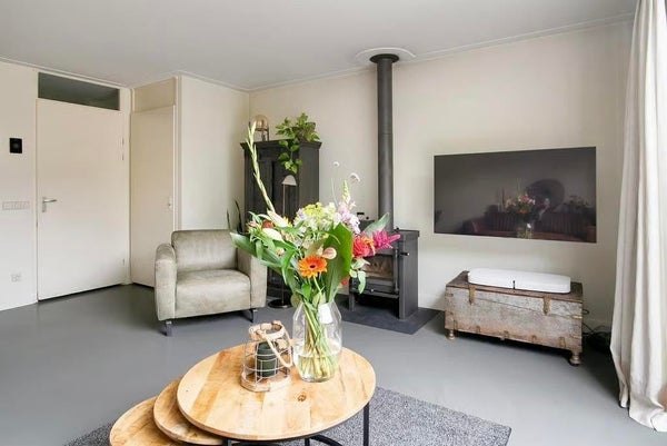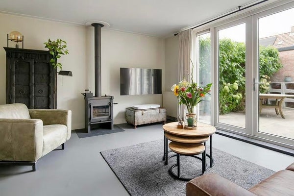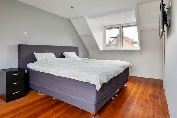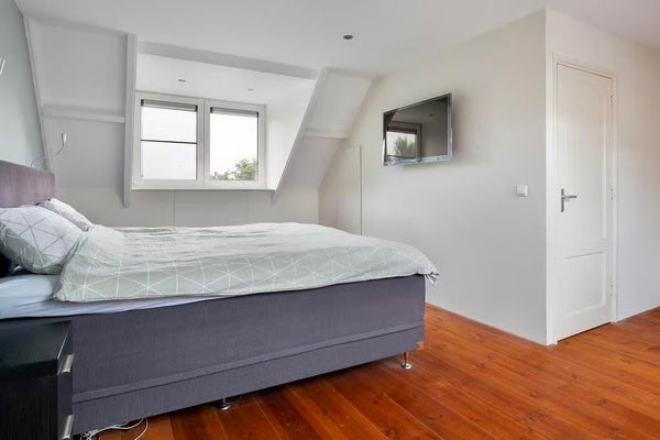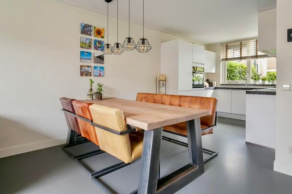 De woning is deels gemeubileerd. Zo blijft er een stijlvolle eettafel met stoelen achter, ideaal voor gezellige diners, evenals een ruim kingsize-bed op zolder. Deze meubels zijn te zien op de foto’s en blijven achter bij verhuur, zodat u direct kunt genieten van een comfortabele inrichting. Overige meubels op de foto’s zijn ter illustratie geplaatst om de ruimtes goed te kunnen tonen.