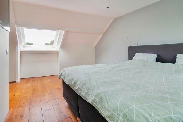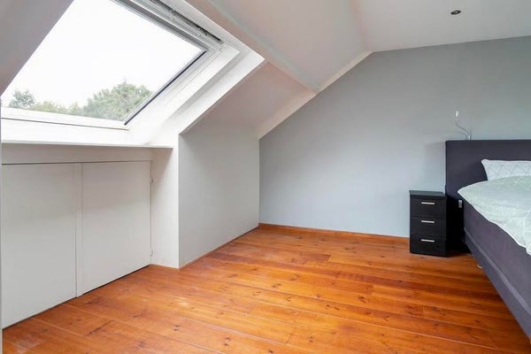 Via een vaste trap bereikt u de ruime vierde slaapkamer met dakkapel, Velux-dakraam en bergruimte aan beide zijden. Hier vindt u ook de cv-installatie (Nefit, 2020), aansluitingen voor wasmachine en droger en toegang tot een praktische vliering.