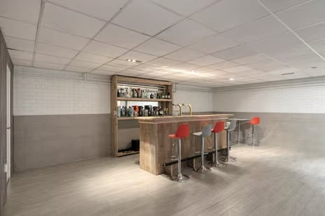 Begane grond; entree, keuken die voorzien is van kookeiland met inductieplaat, granieten werkblad met ingebouwde stopcontacten, vaatwasser, combi-oven, afzuigkap, quooker en een amerikaanse koelkast. De woonkamer heeft meerdere zithoeken met een split-level indeling. Met een glazen schuifwand kun je de ruimtes naar wens openen of afsluiten. Op het hogere niveau is een royale zitkamer, slaapkamer met badkamer en suite, en een extra kamer. In het souterrain vind je een sfeervolle bar, welnesshoek met suana en jacuzzi en een extra kamer. Ook is er een ruime kelder.