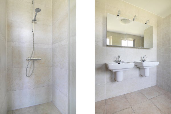 Via trap is de tweede verdieping te bereiken alwaar de 2 andere slaapkamers zijn. Tussen de slaapkamers in is de tweede badkamer gelegen met wastafel, douche en toilet.