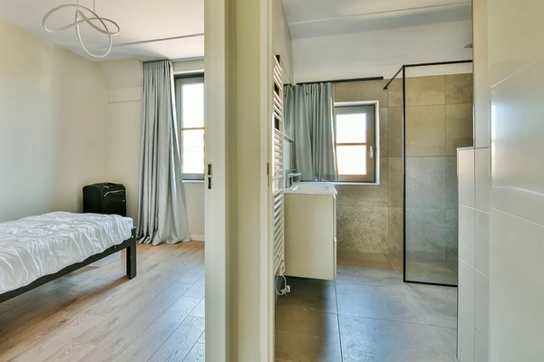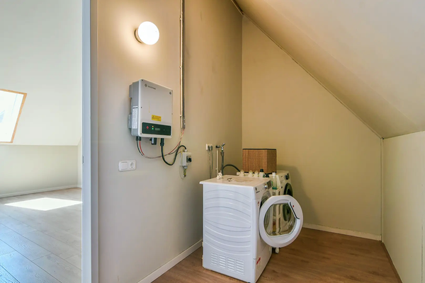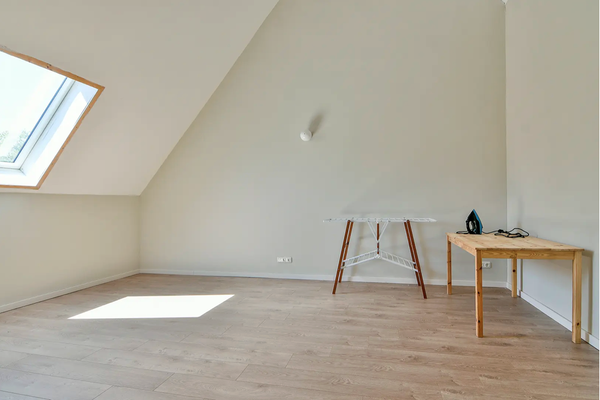 Tweede verdieping: De royale zolder met een nokhoogte van circa 5,5 meter biedt volop mogelijkheden — bijvoorbeeld voor een extra slaapkamer, werkruimte of hobbykamer. Hier bevinden zich tevens de technische installaties, waaronder de WTW-installatie, en aansluitingen voor wasmachine en droger.