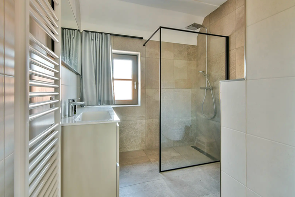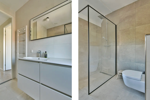Eerste verdieping: Overloop met toegang tot drie slaapkamers en de badkamer. De moderne, volledig betegelde badkamer is voorzien van een stijlvol wastafelmeubel, ruime inloopdouche, zwevend toilet en designradiator.