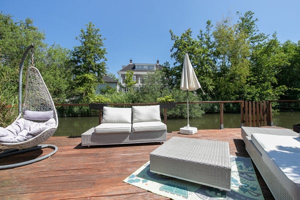 Luxe gestoffeerde geschakelde woning te huur in de populaire wijk Floriande. Het is een mooie ruime woning met 5 slaapkamers. Het is een plaatje om van binnen te bekijken. Indeling: entree met separaat toilet. De ruime living heeft openslaande deuren naar de prachtige tuin die aan het water grenst. De woning is uitgebouwd waardoor een een zeer ruime woonkamer is ontstaan, die smaakvol is ingericht.