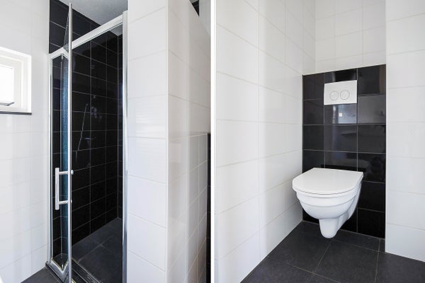 Eerste verdieping: overloop, 2 ruime slaapkamers aan de achterzijde van de woning en 1 ruime slaapkamer aan de voorzijde van de woning. De moderne badkamer is in lichte kleurstelling uitgevoerd & voorzien van een wastafel, douchecabine en 2e toilet.