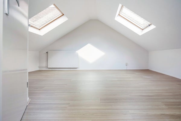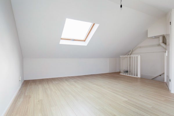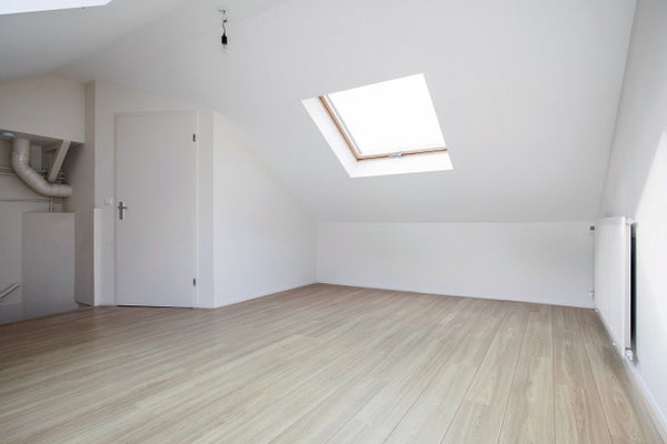Tweede verdieping: royale zolderverdieping, in te richten als vierde slaapkamer. Hier bevinden zich tevens de aansluitingen voor de wasmachine en droger en de opstelplaats van de C.V.-ketel.