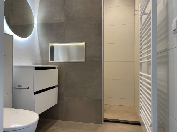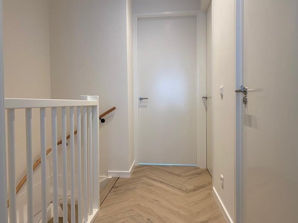 Via de overloop zijn aan de achterzijde de 2e en 3e slaapkamer te bereiken. Daarnaast is de lichte en frisse badkamer te vinden met 2e toilet, wastafelmeubel, spiegel met ingebouwde verlicht, handdoekradiator en inloopdouche.