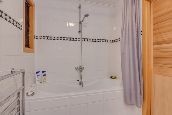 Op de begane grond is tevens een slaapkamer aanwezig met directe toegang tot de badkamer, voorzien van ligbad, douche en dubbele wastafel. Daarmee is de woning levensloopbestendig.