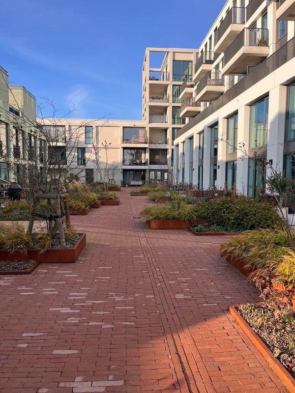 1e verdieping: 3 slaapkamers, badkamer voorzien van een douche, ligbad, handdoekradiator en wastafelmeubel met dubbele kraan. Aparte ruimte voor wasmachine en droger. Apart toilet met fonteintje. Tevens is er vanuit de hal toegang tot de woonkamer met prachtig uitzicht over de daktuin. Buiten: Vanuit de grote woonkeuken is toegang tot het priveterras en daktuin.