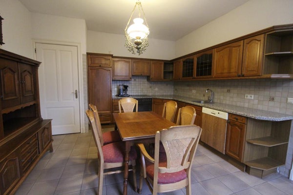 Via de entree en sfeervolle lang hal zijn alle vertrekken te bereiken. Zo is er een ruime woon- en eetkamer aan de voorkant van de woning. Daarnaast is er een eetkeuken voorzien van o.a. een vaatwasmachine en oven.