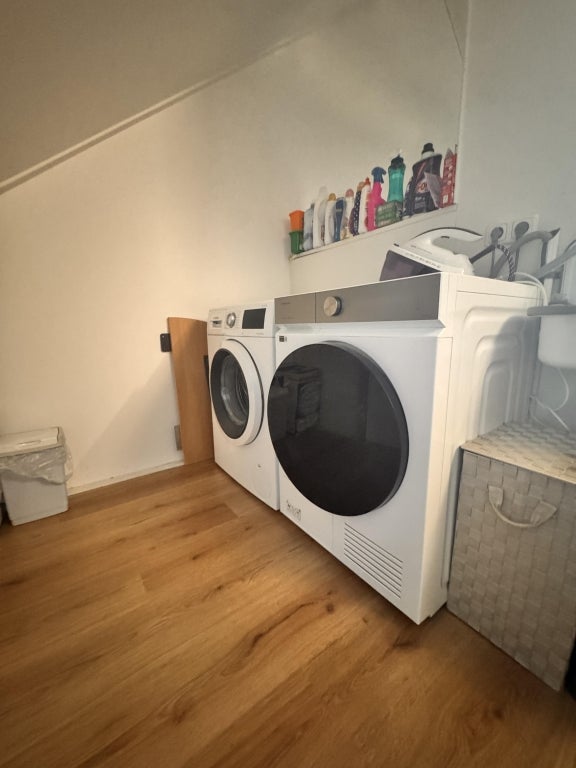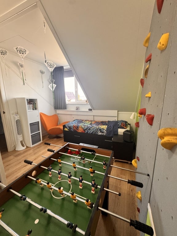 Op deze verdieping is nog een ruime slaapkamer, ingericht als kinderkamer met een uitschuifbaar twee persoonsbed, en een aparte ruimte met de wasmachine/ droger opstelling.