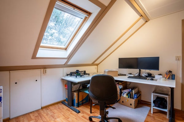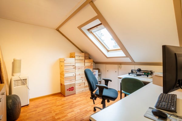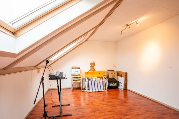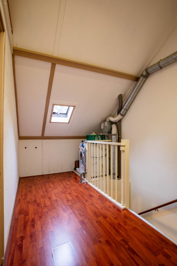 Via een vaste trap bereik je de tweede verdieping, bestaande uit een voorzolder en nog twee slaapkamers. Op de voorzolder vind je de cv-installatie en de aansluiting voor wasapparatuur.