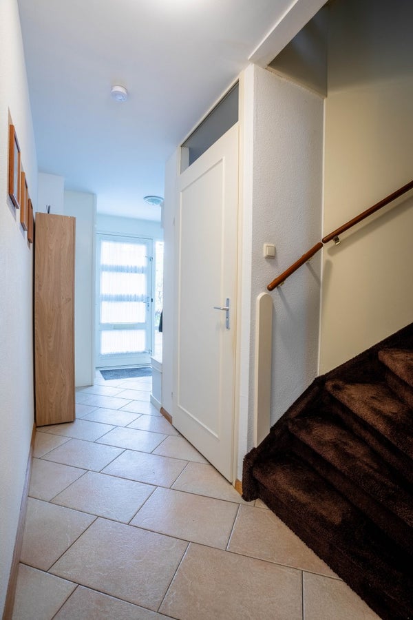 Via de entree kom je in de ruime hal met toegang tot het toilet, de meterkast, de trapopgang naar de eerste verdieping en de deur naar de woonkamer. De royale hal zet direct de toon voor de rest van de woning, vrijwel elke ruimte in dit huis is ruim opgezet.