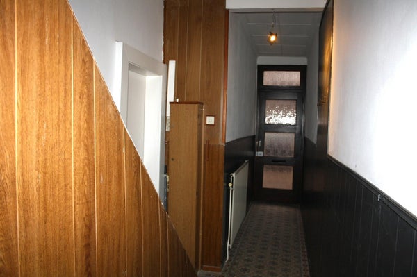 Ruime hal/entree. Woonkamer (circa 25m2). Gesloten keuken (2.39 x 4.00) voorzien van apparatuur (koelkast, 4 pits-gaskookplaat, afzuigkap). Badkamer (2.88 x 2.46) met tegelvoer, toilet, douche, wastafel met badmeubel, wasmachineaansluiting.