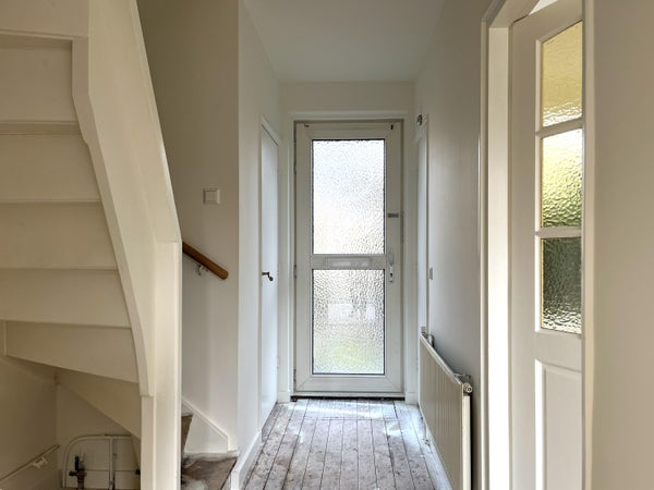 De woning van 86 m2 heeft een zonnige ruime woonkamer, toilet, trapkast, aparte keuken. Vaste trap naar de eerste verdieping. Op de 1e verdieping zijn 3 slaapkamers en een badkamer. In de kleine slaapkamer is de wasmachine aansluiting. Vanuit de keuken entree naar tuin.
